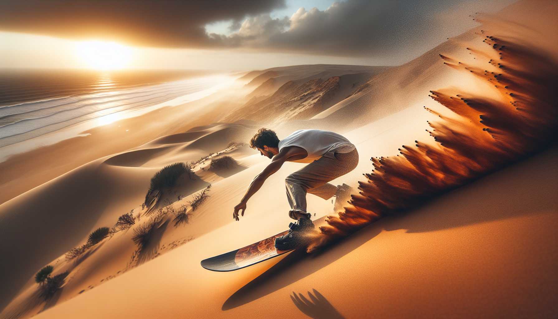 Sliding down sandy slopes like a pro, because why walk when you can sandboard?