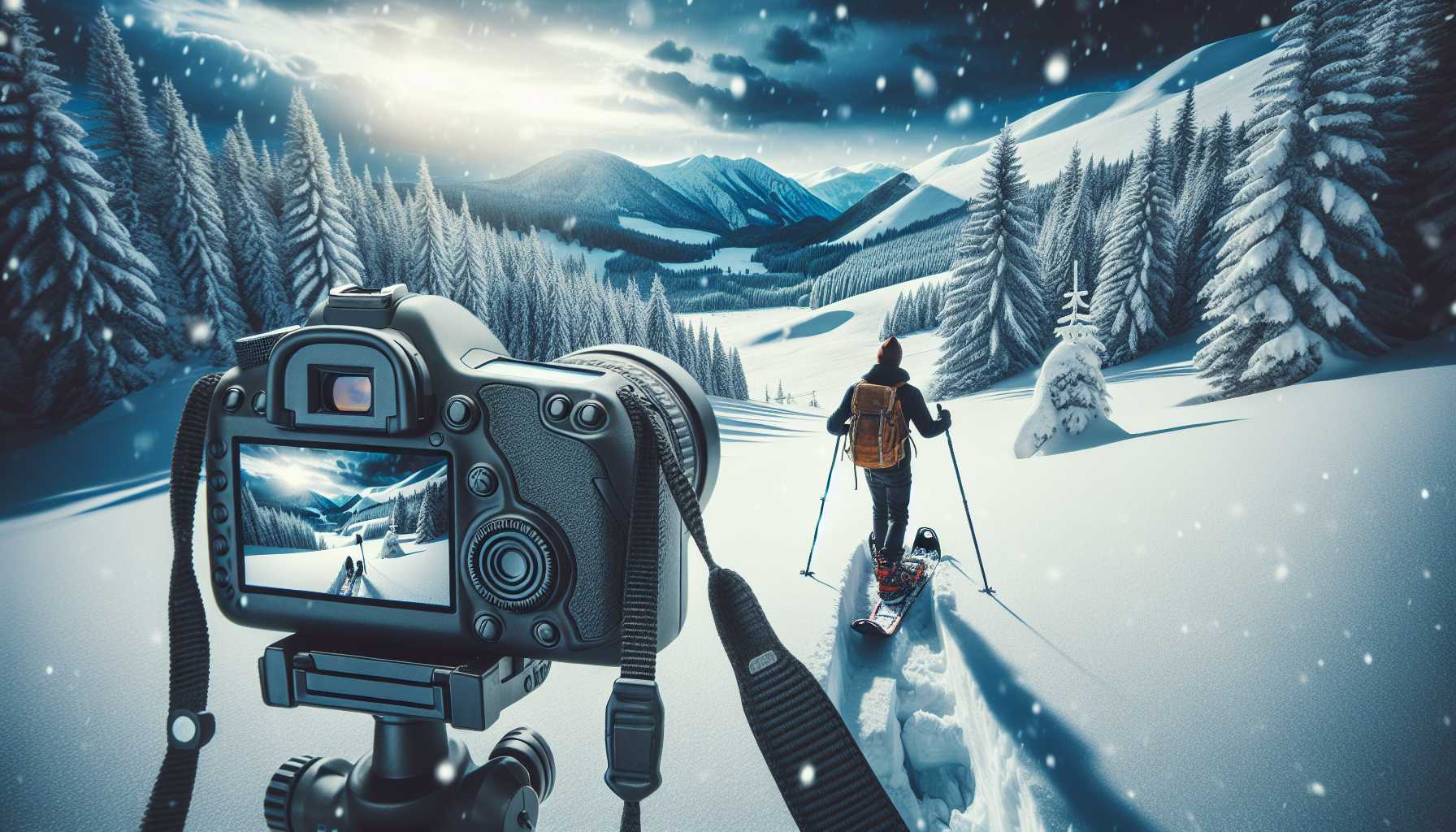 Capturing the magic of winter by snowshoeing through enchanting landscapes.